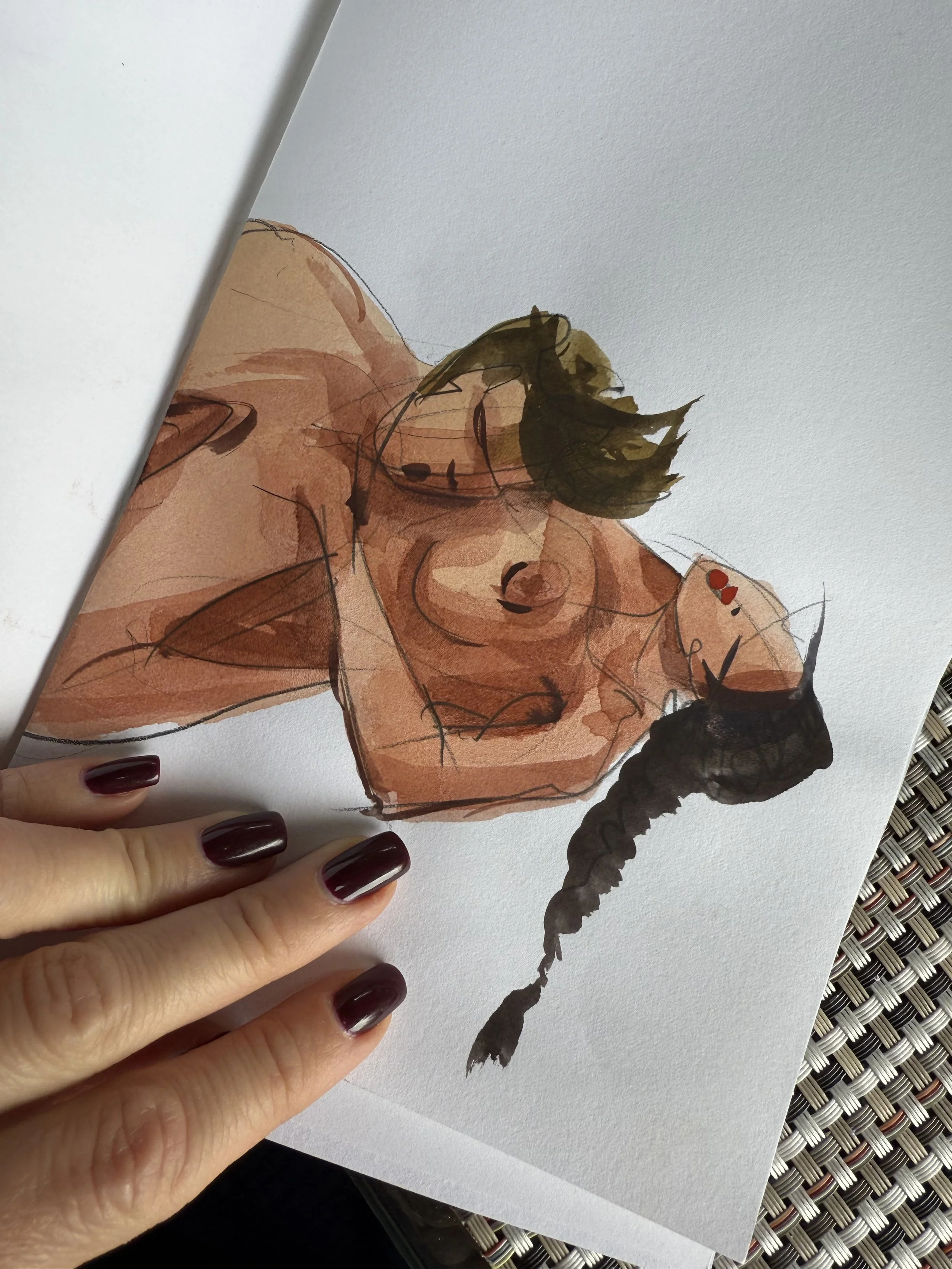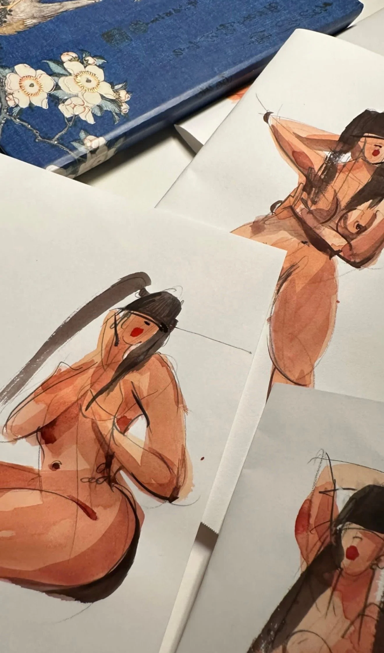 From this time together, a small collection of original sketches is created — fragments of posture, balance, and stillness.
